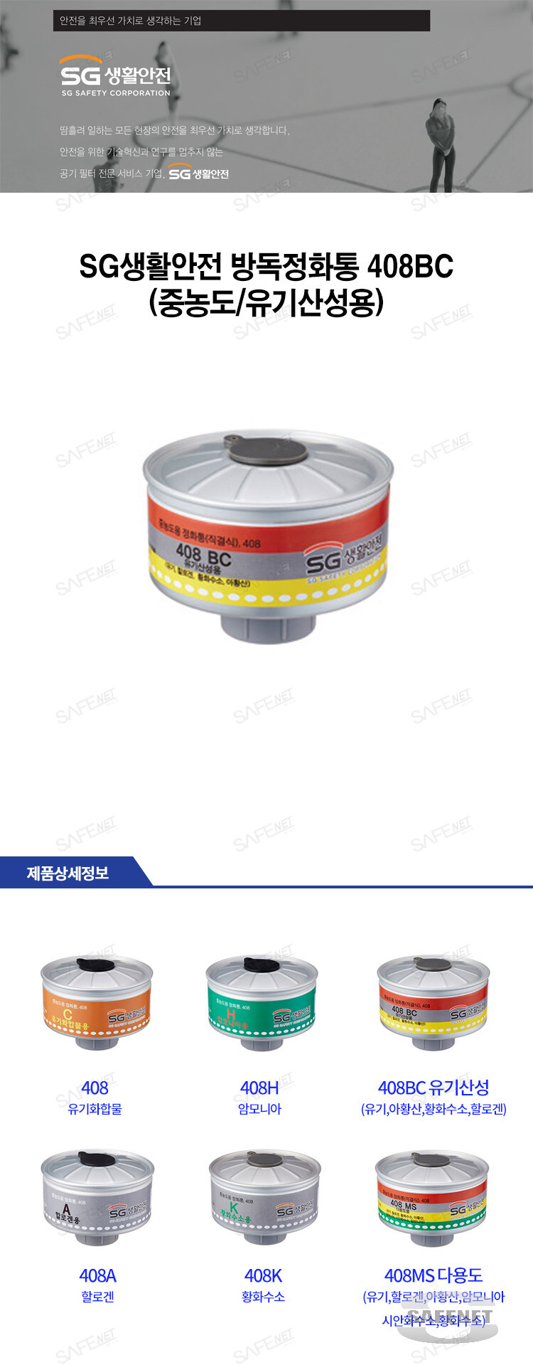 SG생활안전 방독정화통 408BC (중농도/유기산성용)
