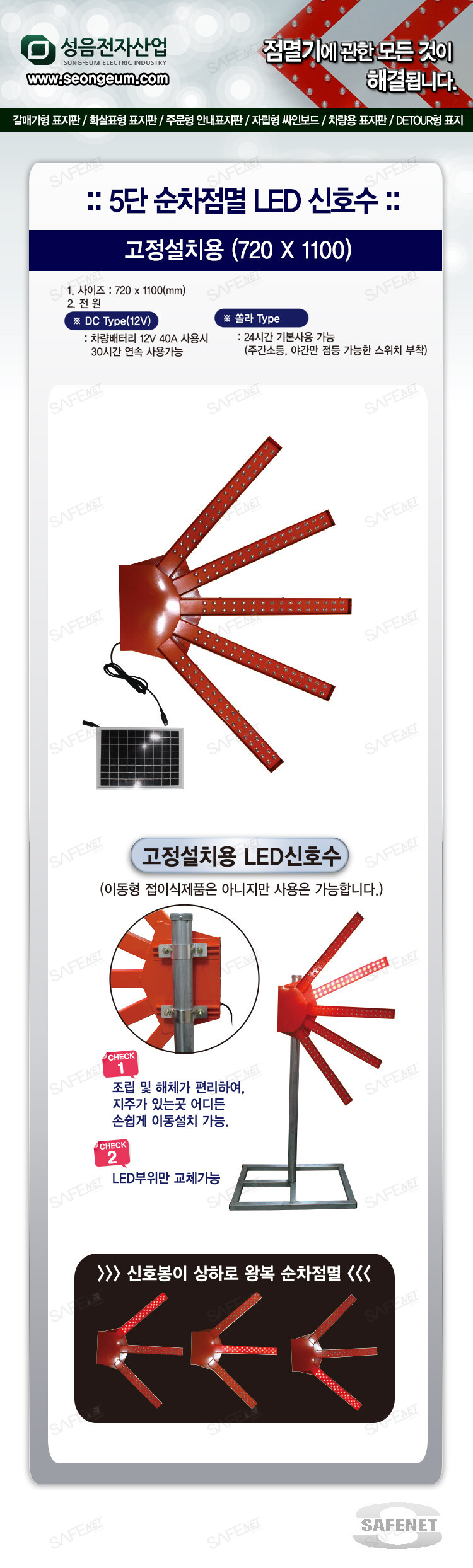 5단 순차점멸 LED 신호수(고정설치용 720 X 1100)