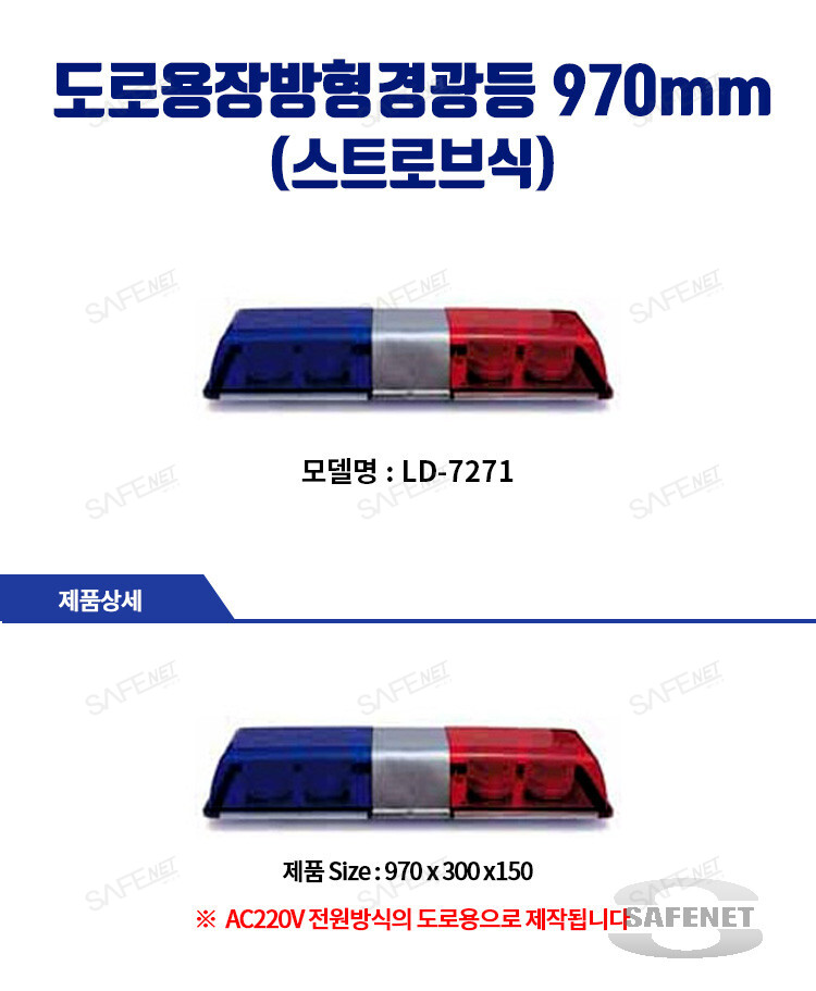 규격 AC220V / 970 X 300 X 150 / 스트로브 6구 /청색-적색