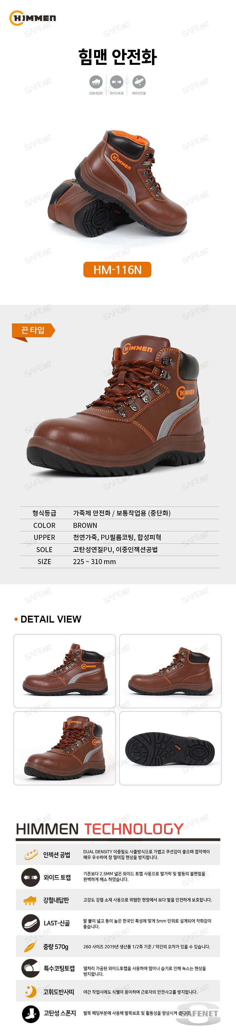 형식등급: 가죽제 안전화 / 보통작업용 (중단화)