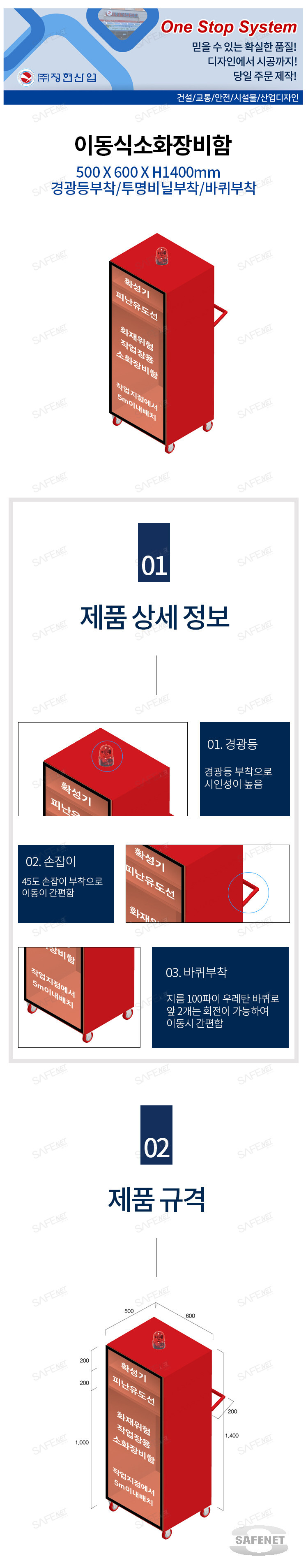 이동식소화장비함 (경광등/바퀴 부착) 500 X 600 X H1400mm