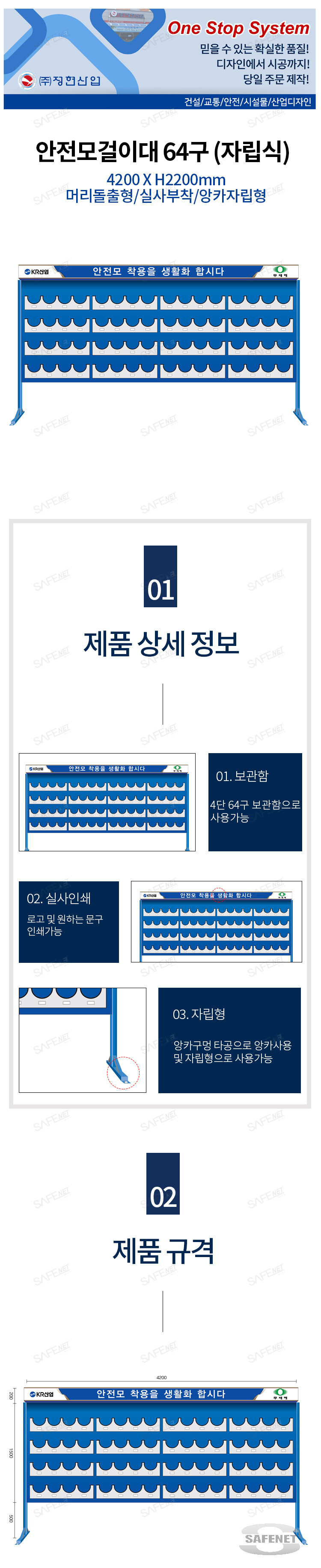 안전모걸이대 64구 (자립식+앙카고정식) 4200 X H2200