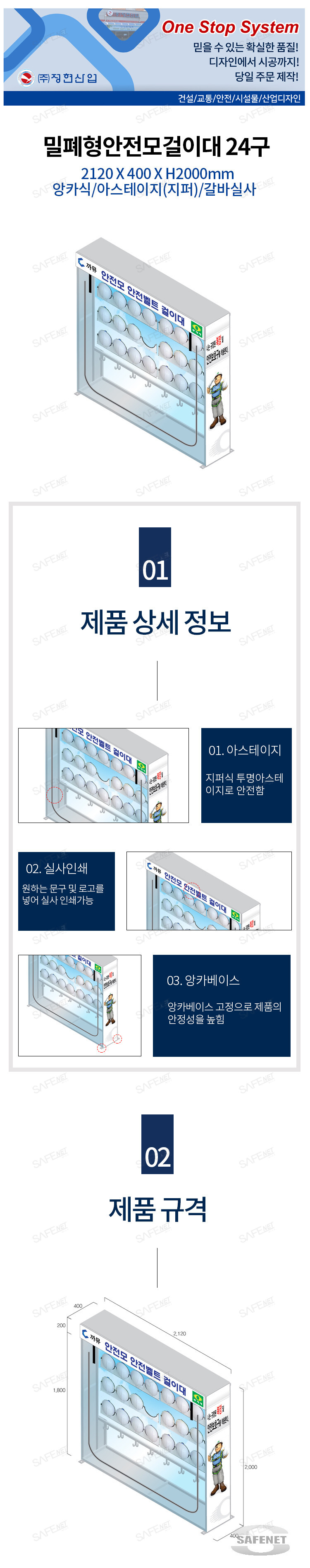 밀폐형안전모걸이대 24구 (앙카식/아스테이지) 2120 X H2000