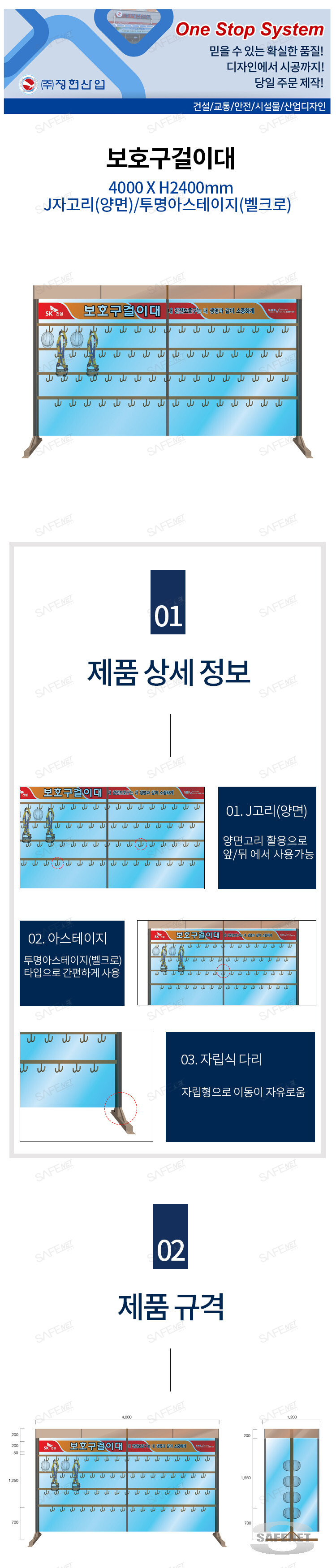 고리형보호구걸이대 4000 X H2450mm (지립식/투명아스테이지)