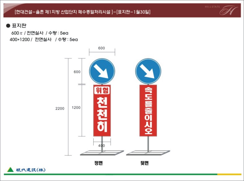 자립식 도로표지판/위험천천히