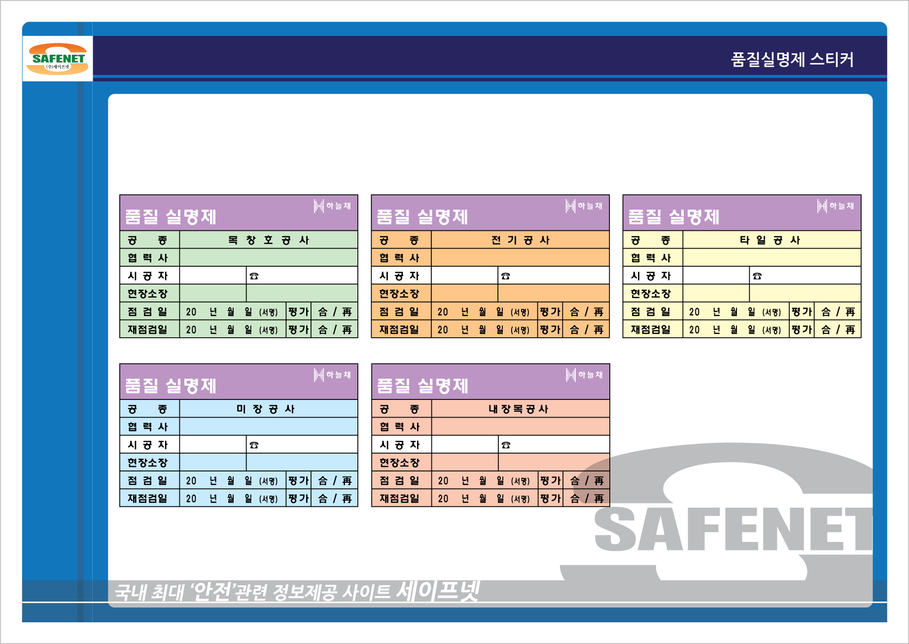 목창호공사/전기공사/타일공사/미장공사/내장목공사 등 공종별 품질 실명제 스티커