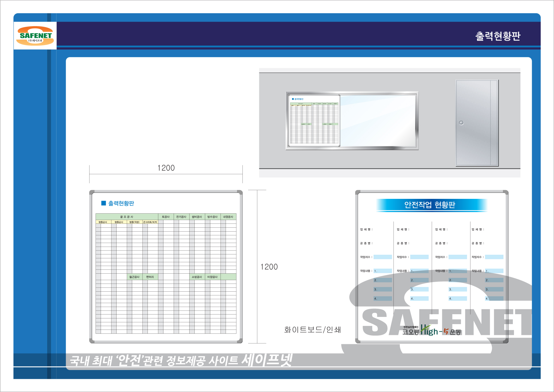 공종별 출력인원 현황 / 작업내용 게시 / 화이트보드 게시판 / 안전작업 현황판