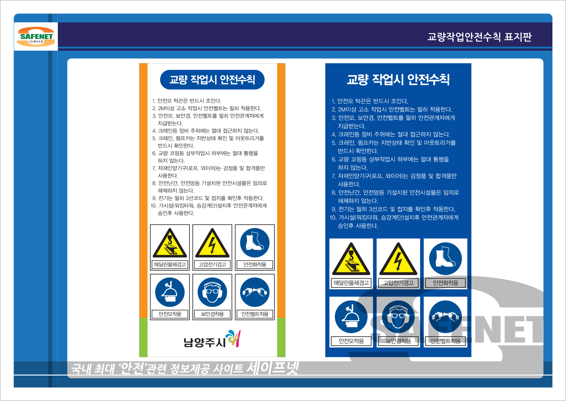 교량작업시 안전수칙 표지판