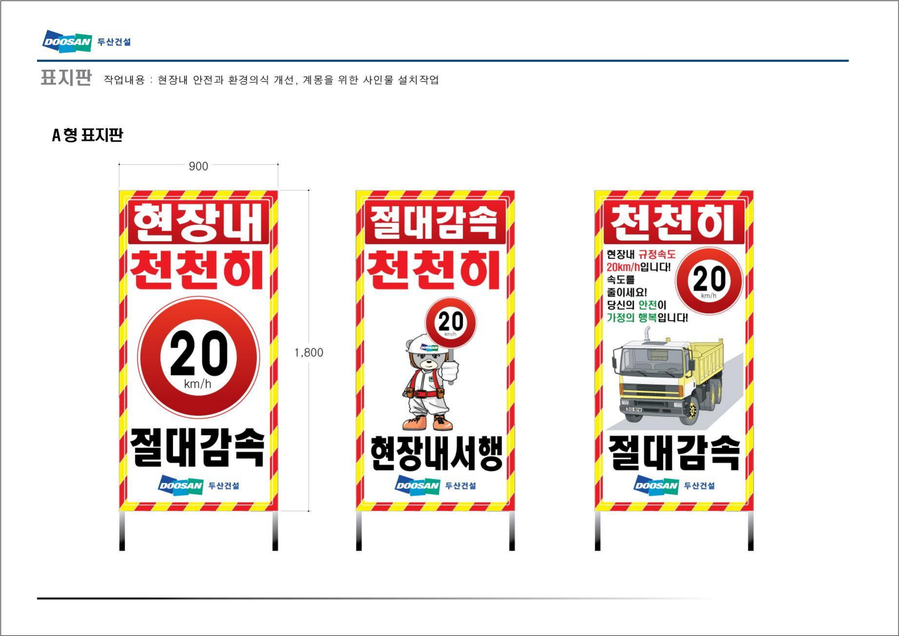 현장내천천히 표지판