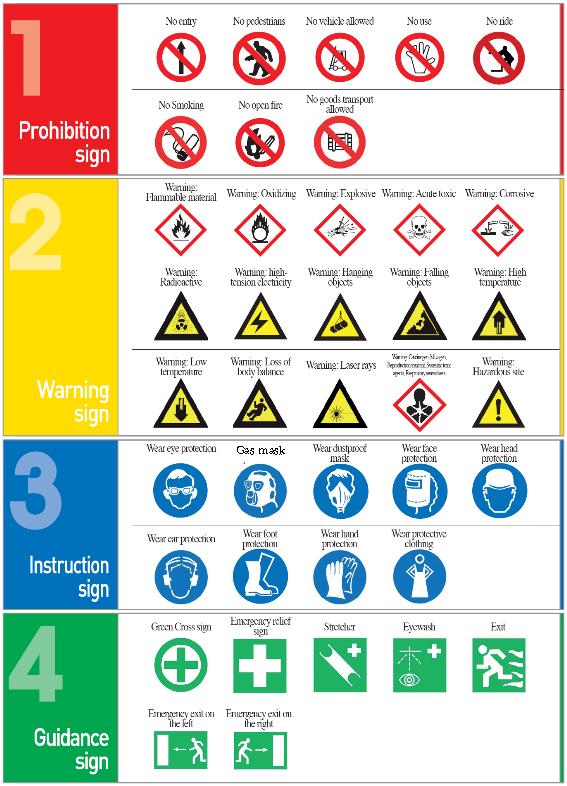 영어금지표지, 영어경고표지, 영어지시표지, 영어안내표지