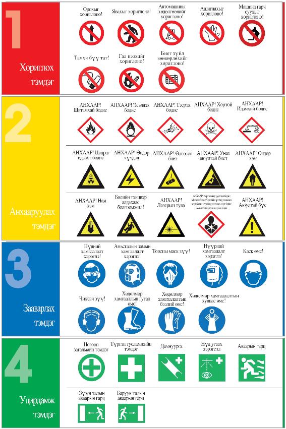 몽골어금지표지, 몽골어경고표지, 몽골어지시표지, 몽골어안내표지