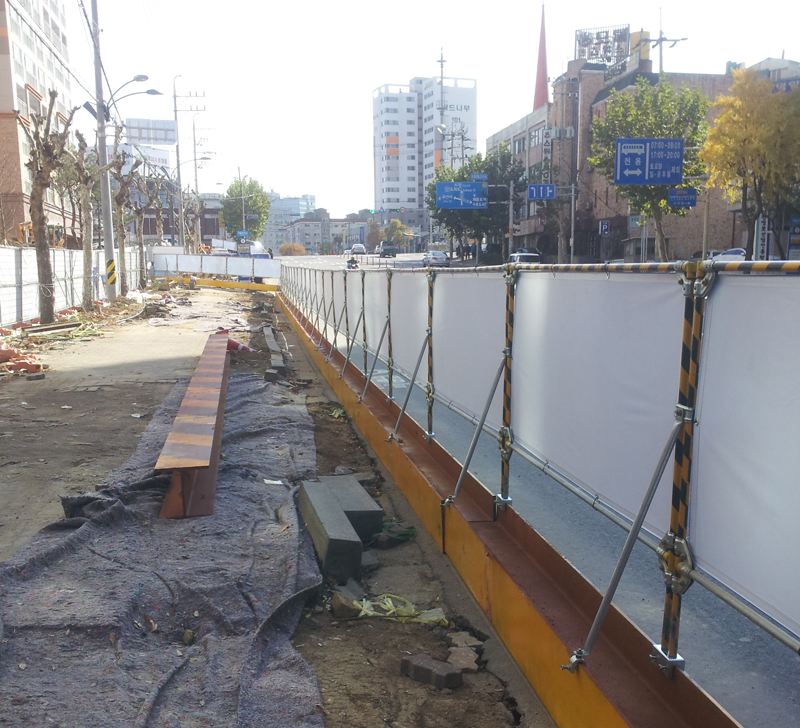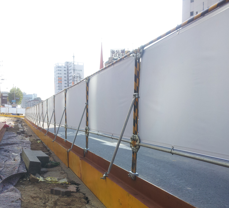 곰돌이반사봉이동식배너휀스 H빔용하부지주를 이용한 가림막설치