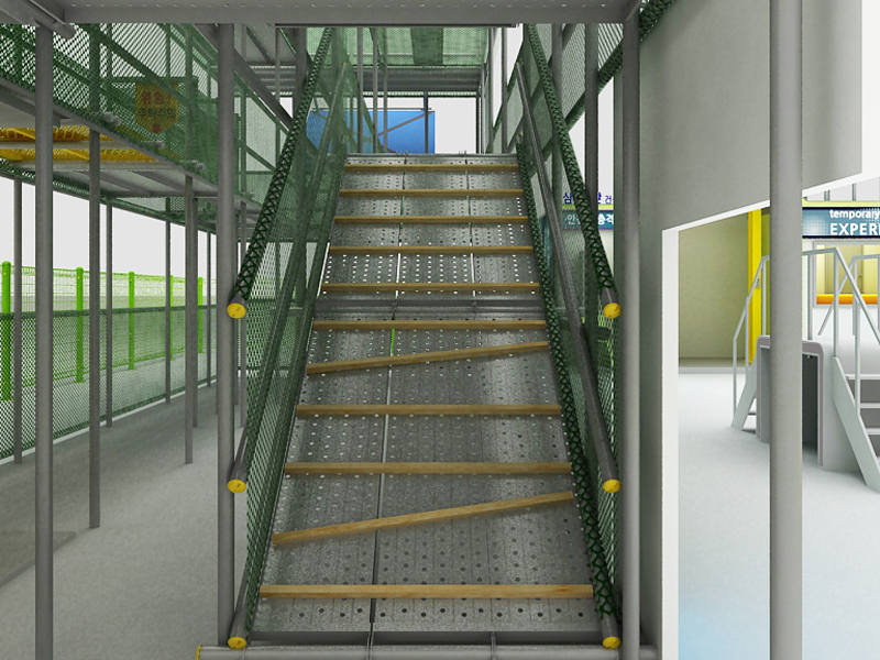 불량 경사로 계단 체험 : 불량 가설경사로 계단을 체험함으로써 안전에 대한 경각심 고취