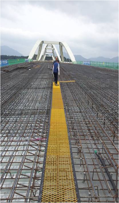 ◆ 데크판이 설치된 바닥은 가로 방향으로만 철근이 배근되어있어서 철근용을 사용하면 단목 방향으로 꺾이고 강도도 약하다. 장목방향으로 가공두께를 5t로 가공하면 강도가 월등하게 증가된다.