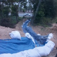 천막과 모래주머니로 배수로 설치