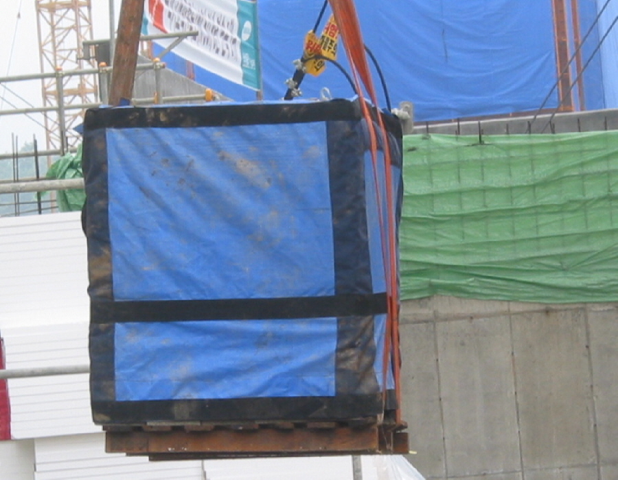 자재인양시 낙하물방호조치