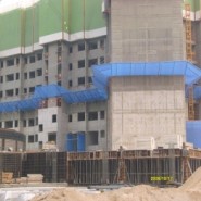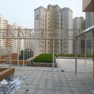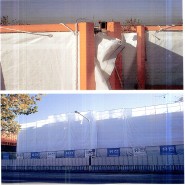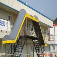 [신진천막] 현장사무실 계단에 천막지붕으로 안전통로를 설치한 사례