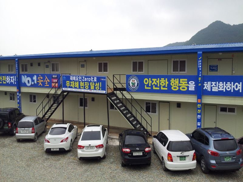 현장사무실 기둥을 활용한 안전계몽표지 설치