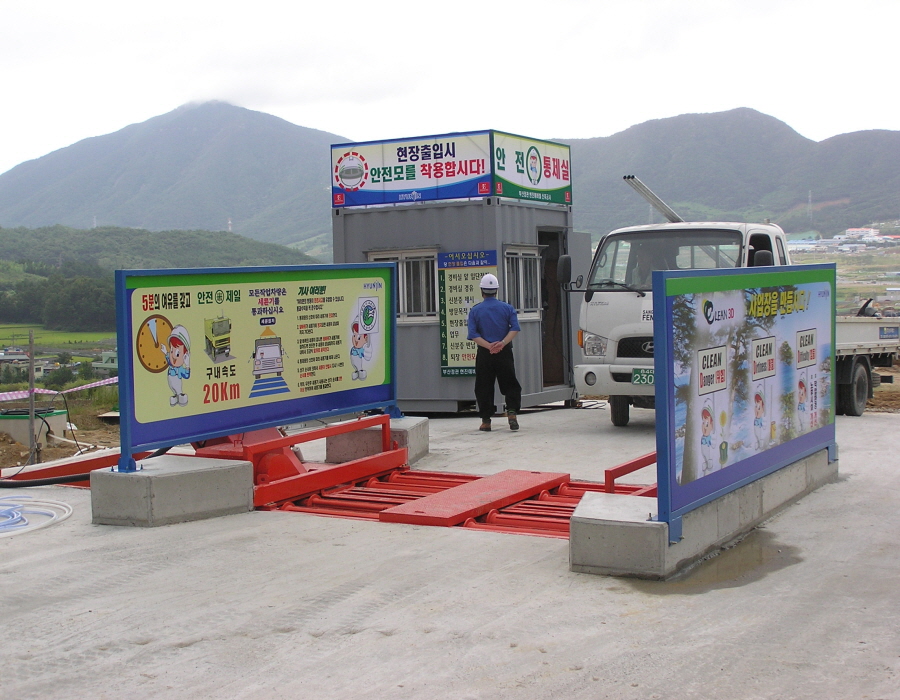 출입차량의 비산먼지를 줄이기 위한 세륜장 (오픈형)