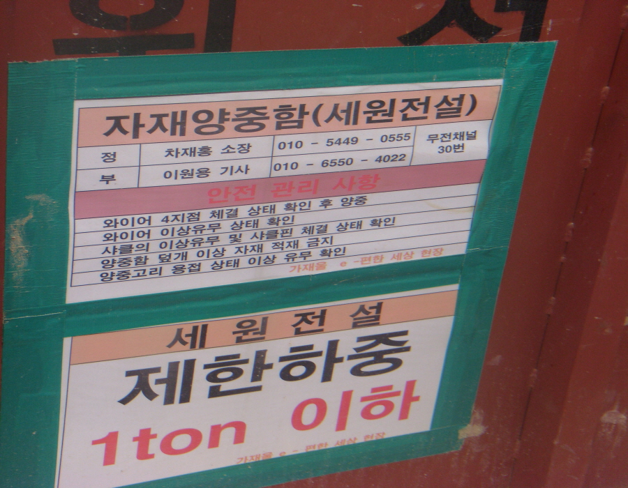 자재양중관리 표지판