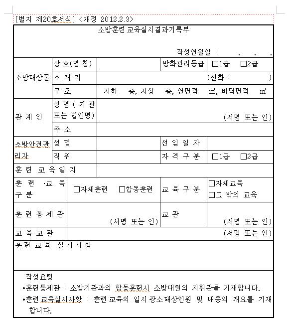 소방훈련교육실시결과기록부