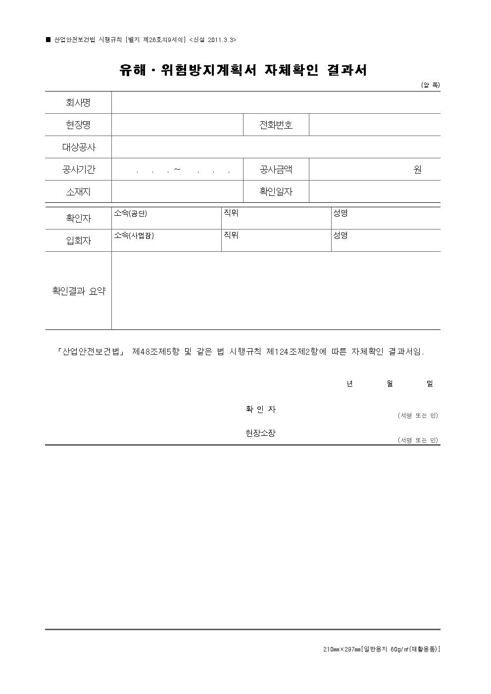 [서식 26의9] 유해ㆍ위험방지계획서 자체확인 결과서.hwp
