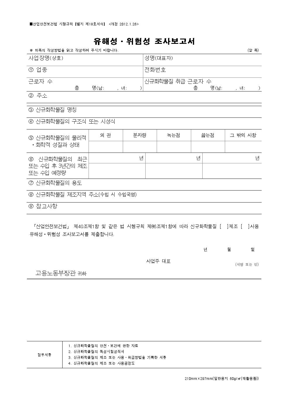 신규화학물질의 유해성 및 위험성에 대한 조사보고서