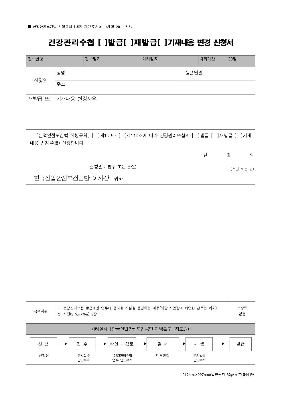 건강관리수첩 발급.재발급.기재내용 변경 신청서