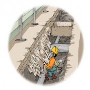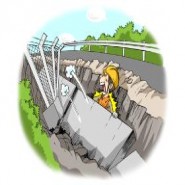 굴착작업중 기둥이 도괴되면서 석재판이 낙하하며 → 배관공, 강타 사망