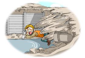 흙막이 가시설 설치작업 중 굴착면이 붕괴 → 가시설공, 매몰 사망