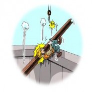 크레인을 이용하여 자재 인양중 H-Beam이 낙하하여 - 철골공, 강타 사망