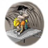 지하철 자재반입구로 강지보 자재를 하역중 간격재(D16철근)낙하 → 착암공, 강타 사망