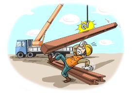 양중작업중 Hanger Clamp에서 H형강 낙하 - 철골공, 강타 사망