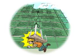윈치를 이용하여 지상 5층으로 석재판을 인 양하던 중 줄걸이로프에서 석재판이 이탈되 어 낙하,하부에 있던 피재자가 맞아 사망한 재해 임.