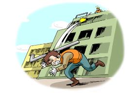 합판을 운반하던중 강재파이프가 낙하하여 → 미장공, 강타 사망