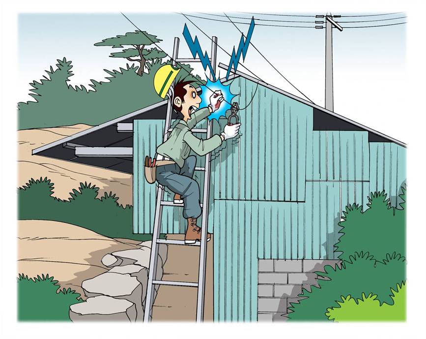 축사 인입전선 피복보호 작업중 감전
