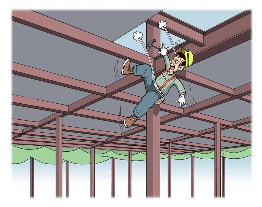 데크플레이트 상부에서 앵글 용접 준비작업 중 추락