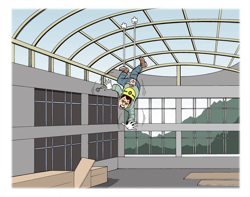 철골빔 조립후 이동중 철골 거더에서 철골공 추락