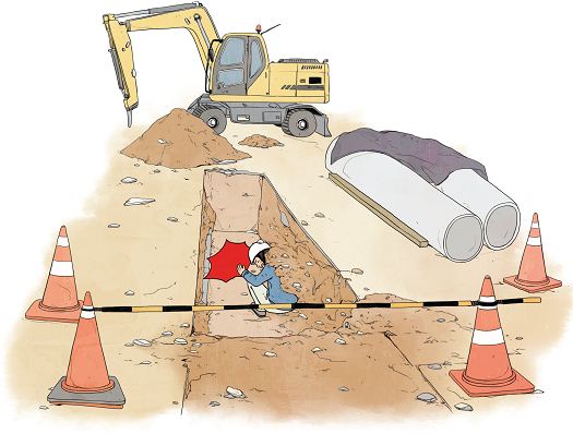 대전 유성구 어은동 일대에서 노후한 우수관(雨水管)을 교체하기 위한 공사가 한창이었다.