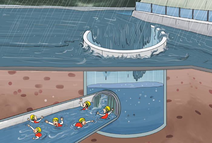 집중호우로 강 수위가 급상승하면서 고수부지에 위치한 터널출입용수직구로 강물이 유입되는 긴급한 상황에서 작업 중지 및 비상대피지시가 현장작업자에게 전달되지 않아 터널 내부에서 작업 중이던근로자들이 갑자기 터널 내부로 밀려들어온 강물에 수몰