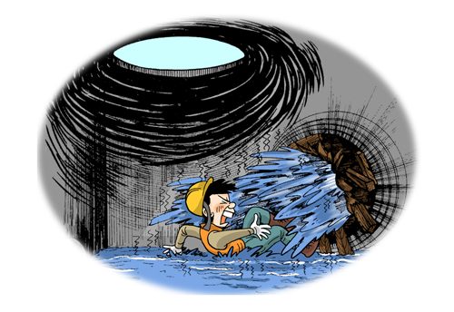 하수관 정비공사중 연질보강튜브 단부가 찢어지면서 → 보통인부, 익사 사망