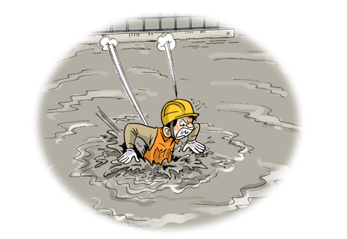 호우로 침수된 엘리베이터 피트 구조물 굴착부에 빠져 → 보통인부, 익사 사망