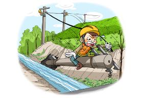전주위에서 고압전선 철거작업중 전주가 도괴되어 → 전공, 추락 사망