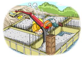 콘크리트 펌프카 지지용 각재 파단으로 붐대가 하강하여 → 펌프카 운전기사 강타, 사망