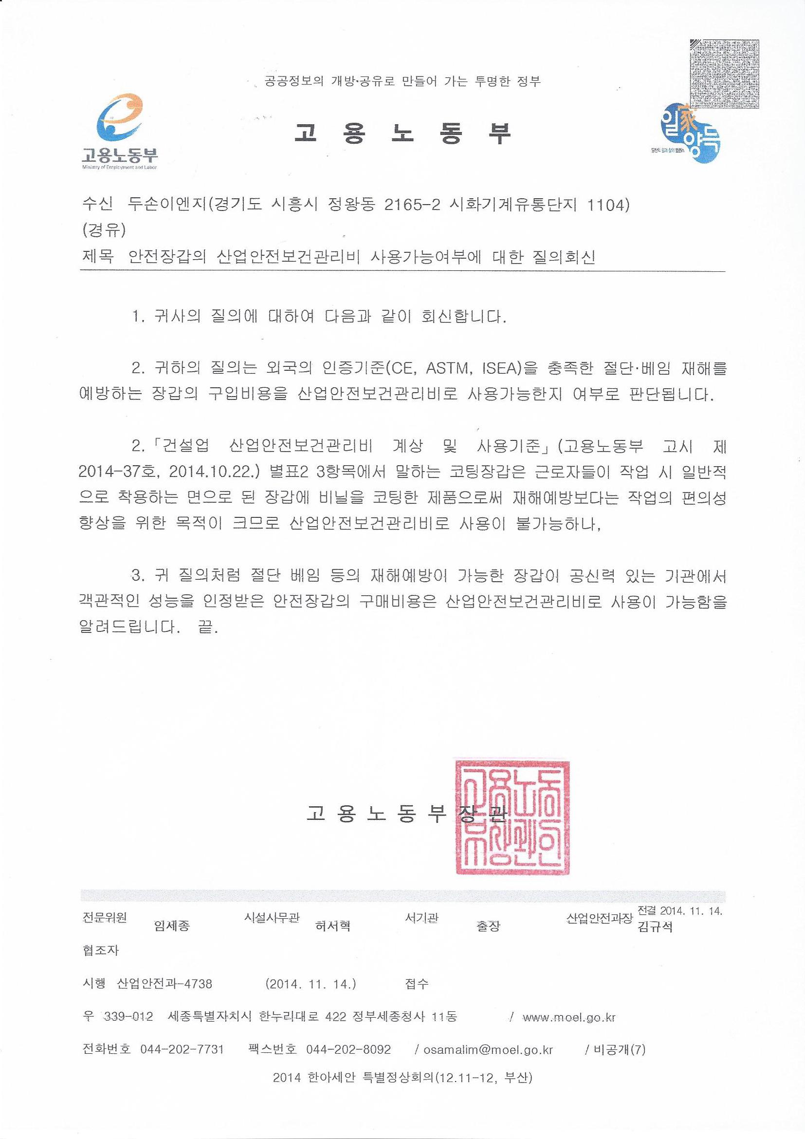 상시, 관리자의 입장에서는 절단,찔림, 충격, 베임, 진동등에 적당한 제품이 있어도 산업안전보건관리비의 비적용 품목이라 현장에서의 사용이 어려운 시점에 안전장갑 생산업체의 노력으로 산업안전보건관리비의 사용이 가능하게 되었습니다.