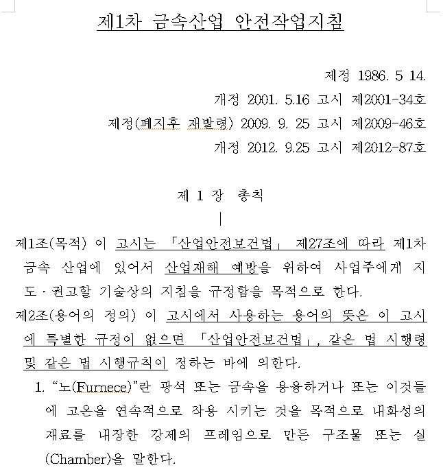 [고용노동부고시 제2012-87호] 제1차금속산업안전작업지침-2012.9.25 개정