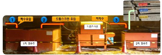 따라서 터널내의 폐수를 터널내부에서 드럼스크린으로 SS를 처리하여 작업용수로서 재활용을 함으로, 외부에서 처리해야 하는 오폐수 처리비용(약품비, 전력비, 용량)을 줄일 수 있다.