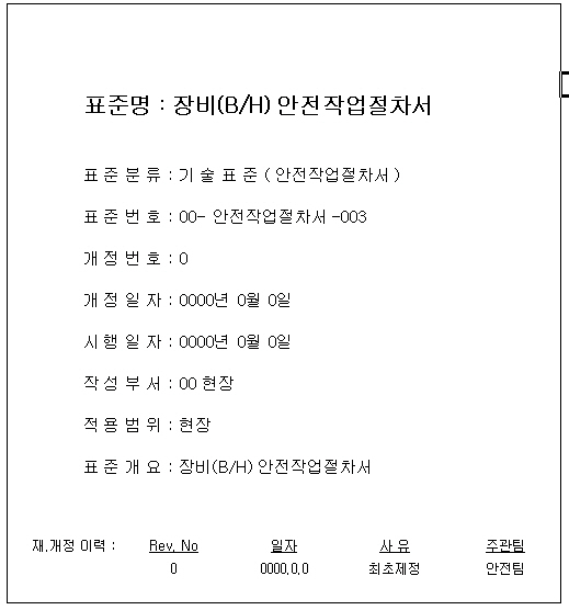 장비(B/H) 안전작업절차서