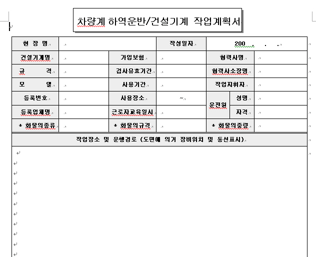 건설기계 작업계획서