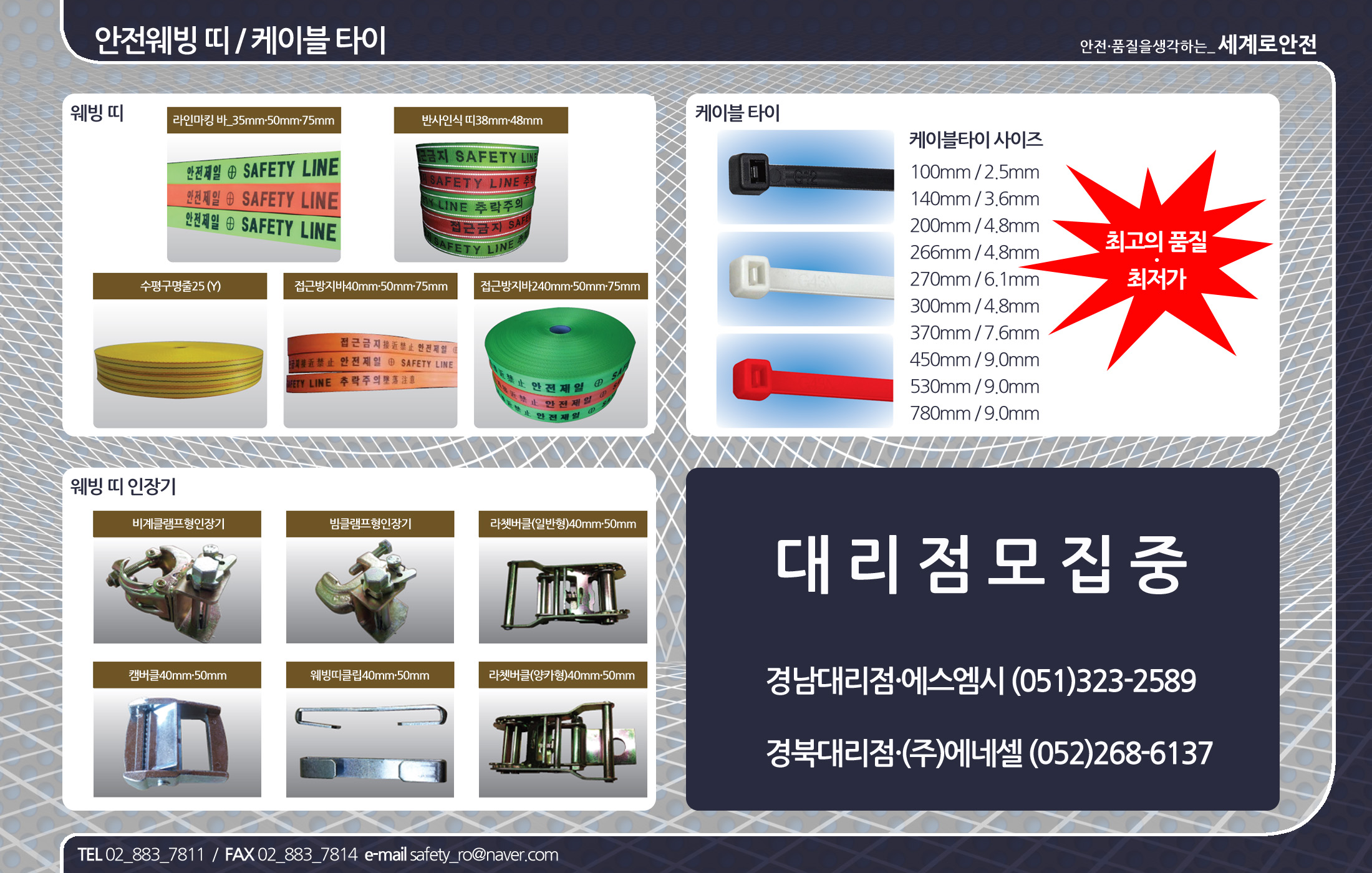 * 안전모, 안전벨트(안전대) : 에스탑, 쎄다(SSEDA)